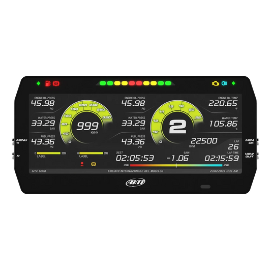 The AiM MX Strada Display Dash is a compact yet powerful instrument panel designed to elevate the driving experience. With a high-resolution TFT display, this sleek unit provides real-time data on essential metrics like engine RPM, speed, coolant temperature, and oil pressure. Its customizable layout allows users to prioritize key information, ensuring a quick and easy glance at crucial data.