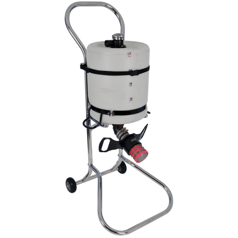 Manufactured from high quality 304 grade stainless steel with a superb hand-polished mirror finish, the Fuel Bottle Stand will provide longevity and comes fitted with heavy duty 100mm diameter wheels to allow for easy manoeuvrability.
