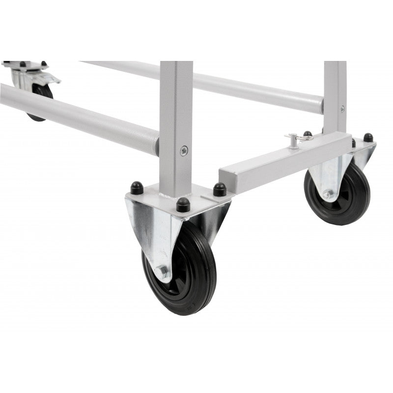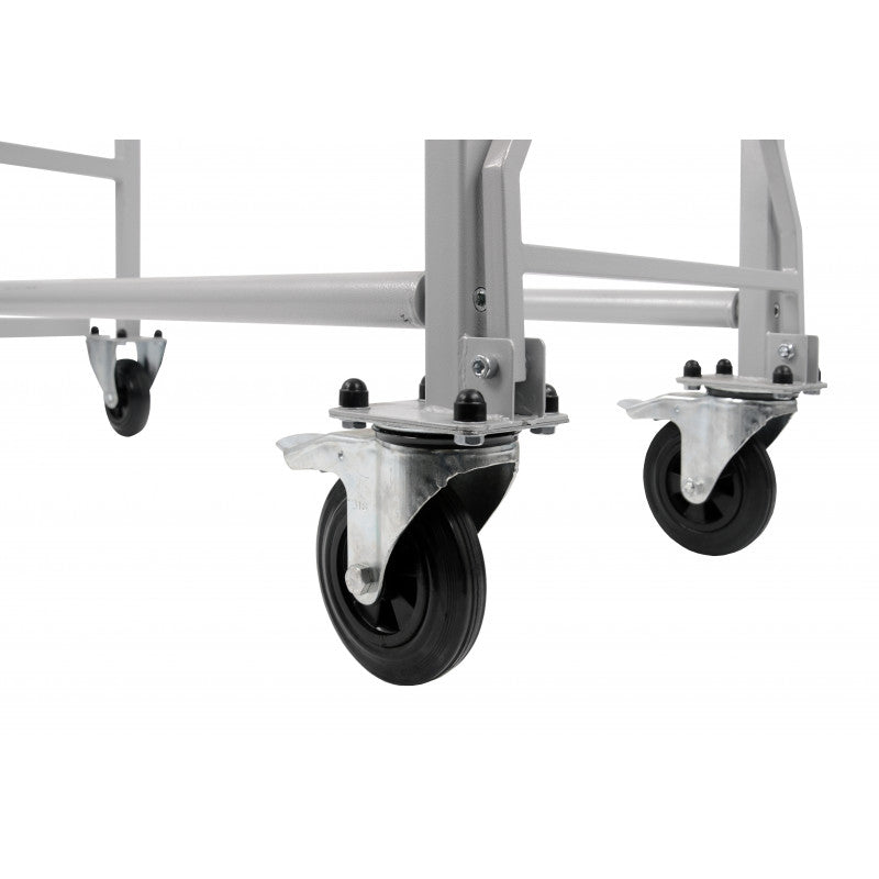 Demountable tyre friendly round cross beams reduce the marking of tyres and are available in 1300mm, 1500mm or 1600mm internal lengths. The height of the top beams can also be adjusted in 3 positions depending on the diameter of your tyres and to reduce the overall trolley height.