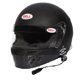 The helmet includes a fully integrated Harris intercom headset, featuring high-quality speakers, comfortable sound-insulating ear cups, a noise-cancelling microphone, and a female Nexus plug connector. This connector is compatible with Stilo or ZeroNoise amplifiers, Harris Race Radio systems, and other brands of amplifiers with a male Nexus type plug.