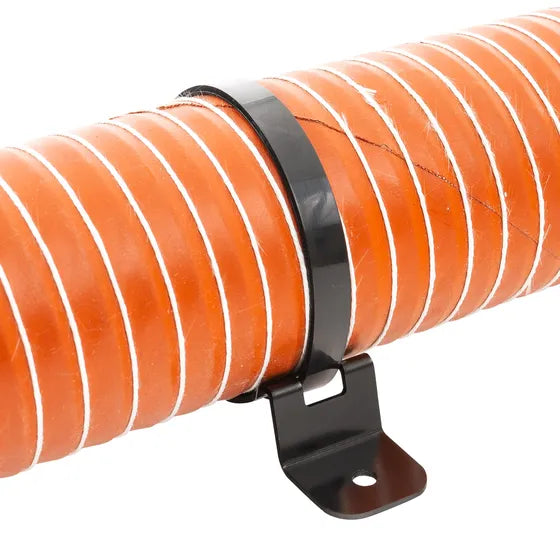 An ideal solution for mounting air ducting hose or any other large diameter Air hose such as cooling, intercooler / turbo pipework. The powder coated base is curved to cradle the hose without distorting the shape and is supplied with a 9mm wide tie wrap to secure the hose in place.