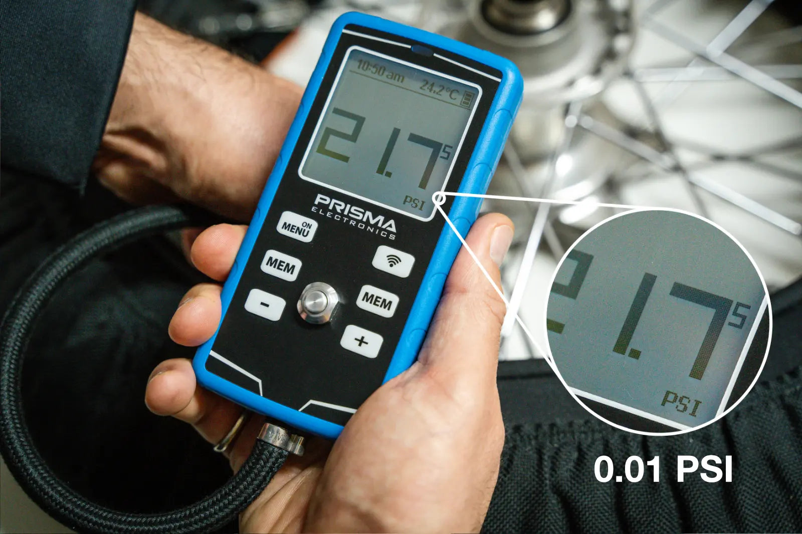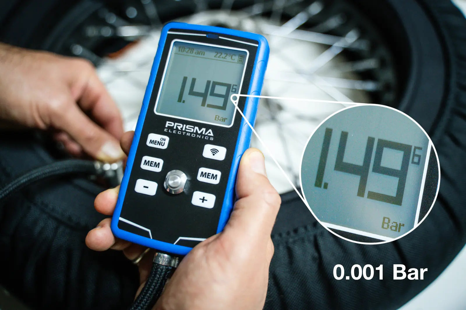 With our digital tire pressure gauge HPM5, pressure resolution is 0.001 BAR / 0.01 PSI, ensuring precision and reliability, which are essential in many Motorsport categories like MotoGP, Superbike, GT Endurance, and others, where tire manufacturers impose mandatory minimum pressures.