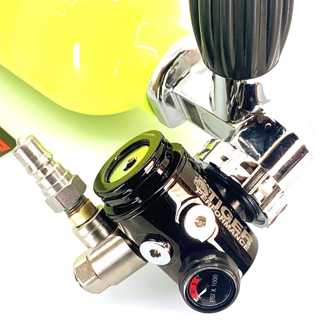 This Tiger Performance First Stage Yoke valve/DIN valve is compatible with our scuba mask