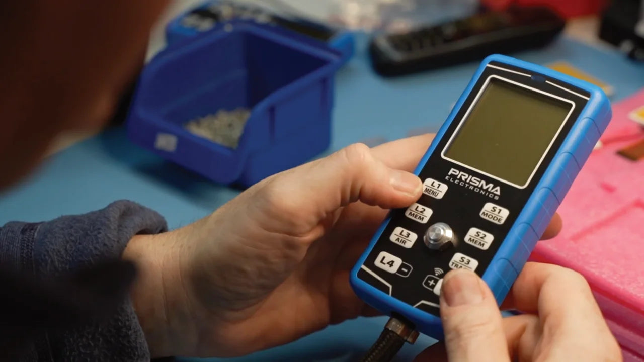 - Tire Chuck: Custom aluminum design by Prisma Electronics, ensuring measurements without air loss from the wheel valve.