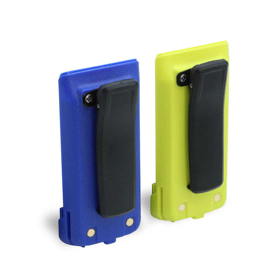 Replacement battery for Rugged Radios R1 handheld radio. Features a built-in 12v charge port and includes a belt clip.